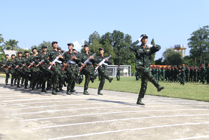 Duyệt đội ngũ tại buổi lễ tuyên thệ chiến sĩ mới năm 2022. Ảnh: Văn Long |