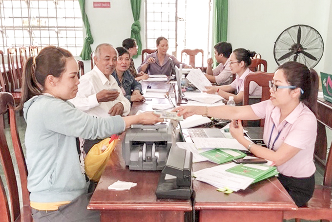 Cán bộ Ngân hàng Chính sách xã hội giao dịch tại cơ sở. |
