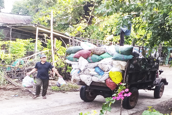 Các thành viên Câu lạc bộ Môi trường thu gom rác trong khu dân cư. |