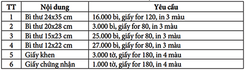 Các đơn vị gửi báo giá chú ý ghi rõ trên bì thư: “ Báo giá in ấn”