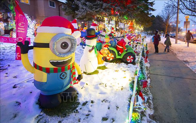 Nhà cửa được trang hoàng rực rỡ đón Giáng sinh tại Toronto, Canada, ngày 23/12/2021. Ảnh: THX/TTXVN