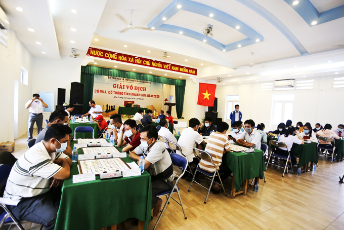 Các kỳ thủ tham gia thi đấu giải cờ tướng tỉnh năm 2020. |