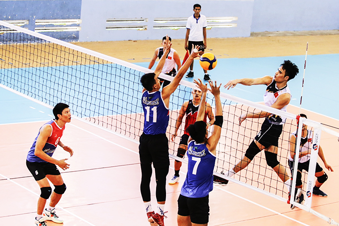 Trận đấu giao hữu giữa tuyển nam bóng chuyền Việt Nam và Sanest Khánh Hòa. |