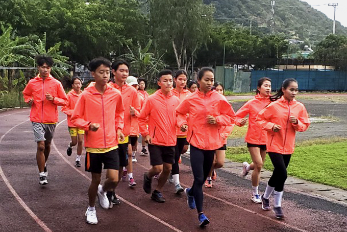Các cầu thủ Khánh Hòa FC tại lễ xuất quân