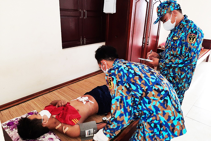 Quân y đảo Tiên Nữ thăm khám cho ngư dân bị nạn. |