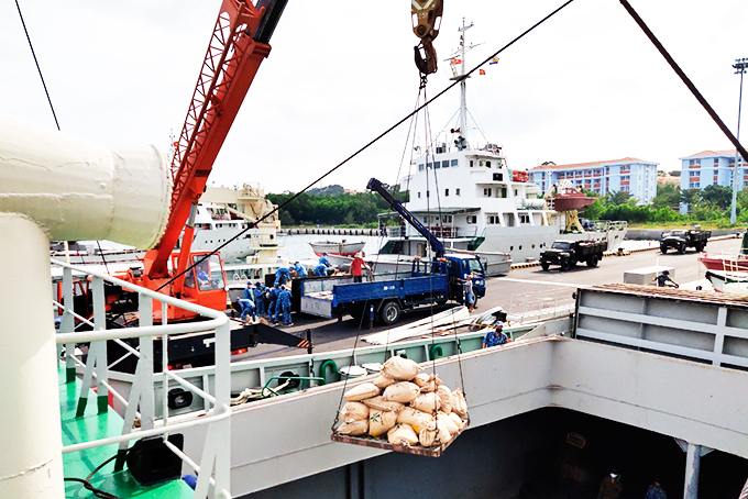Vận chuyển hàng hóa lên tàu chuẩn bị ra Trường Sa. |