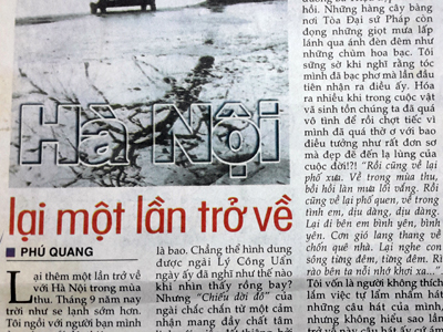 Mấy hôm nay, đọc nhiều bài báo viết về Hà Nội, về những rộn ràng của không khí 60 năm kỷ niệm ngày giải phóng thủ đô (10-10-1954 - 10-10-2014), chợt bắt gặp thông tin nhạc sĩ Phú Quang được vinh danh là một trong những công dân thủ đô ưu tú.