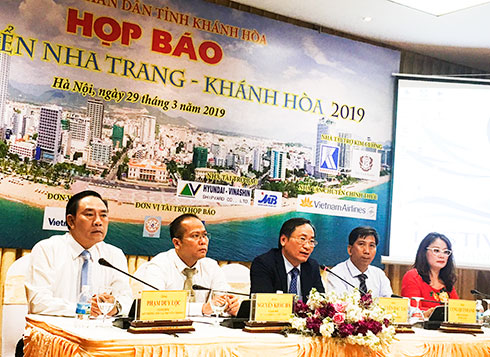 Ngày 29-3, tại Thủ đô Hà Nội, UBND tỉnh tổ chức buổi họp báo giới thiệu về Festival Biển Nha Trang - Khánh Hòa 2019. Ông Nguyễn Đắc Tài - Phó Chủ tịch UBND tỉnh chủ trì buổi họp báo với gần 100 nhà báo đến từ các cơ quan báo chí trong nước tham dự.
