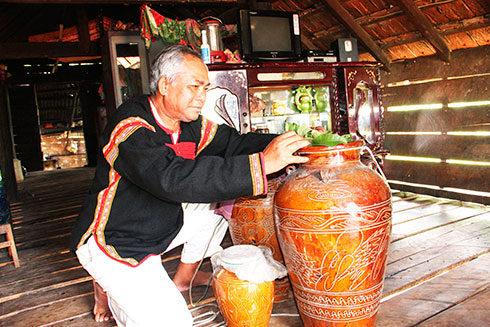 Đồng bào Ê đê ở xã Ninh Tây (thị xã Ninh Hòa) vẫn còn lưu giữ nhiều hiện vật quý. |