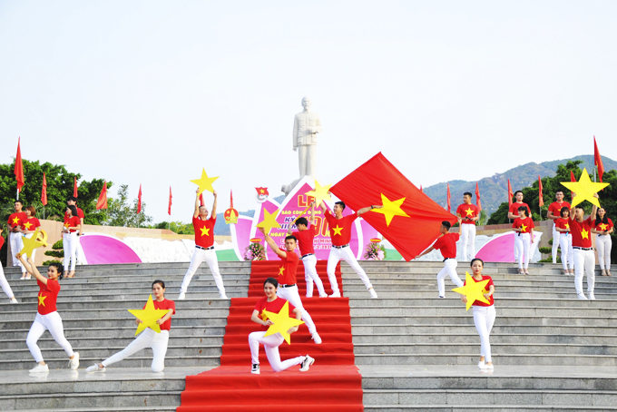 Biểu diễn văn nghệ dưới tượng đài Bác Hồ ở TP. Cam Ranh. Ảnh: Vĩnh Thành |