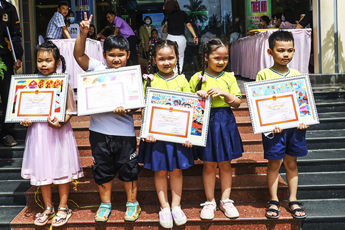 Các học sinh Trường Mầm non Sao Biển (TP. Nha Trang) có tác phẩm đạt giải. |