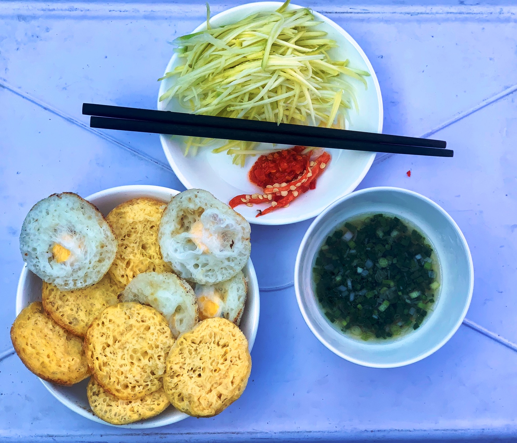 Nhớ bữa cuối ra xe lên sân bay rời Nha Trang, em hỏi còn tiếc nuối gì, thèm gì? Mình cười cười: bánh căn!