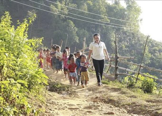 Trường làng tôi giữa vườn rau và hoa mênh mông thoáng đãng nên mỗi tiếng cười, tiếng nói của học trò đều ngân vang ríu rít như đàn chim én, chiền chiện bay trên cánh đồng. Khi chúng tôi vào lớp thì cha mẹ và nhiều bà con đã cắm cúi cuốc xới, gặt hái trên cánh đồng xung quanh. Có lần tôi được nghe chú tôi kể rằng, đi làm được nghe lũ trẻ ê a học bài vang bên tai không chỉ vui mà còn thấy cảm xúc. Chú hay đùa: “Tụi con học bài gì, tụi chú ngoài này thuộc luôn đó!”.