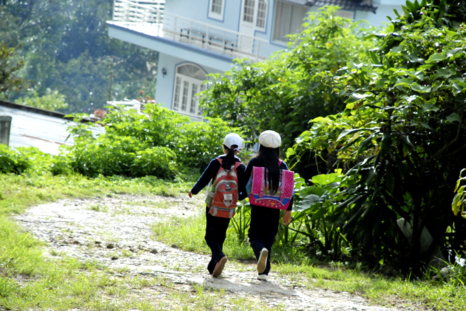 Tôi tự đi đến trường một mình. Lũ trẻ con chúng tôi ngày đó lon ton lũn cũn tự nhiên tới hồn nhiên như bầy sẻ nâu quanh nhà nên việc tự đến lớp là chuyện thường. Ba má chúng tôi đều bận mưu sinh, việc học hành đều do mỗi đứa trẻ cùng nhà trường với thầy cô đảm trách. Có chăng thỉnh thoảng ba động viên xoa đầu hay má hỏi nhẹ như nhắc nhở: “Nhớ vâng lời thầy cô nghe con”, thấy tôi gật đầu là má nghĩ ngay đến việc khác. Bởi thế cuộc sống của tuổi thơ khi đó, trong đó có chuyện học hành rất nhẹ nhàng, không áp lực hay vướng bận nặng nề gì như thế hệ sau này.