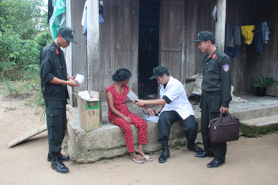 Sau bữa cơm trưa muộn ở Trường Mầm non Vành Khuyên (thôn Liên Hòa, xã Sơn Bình), Đại úy Lưu Văn Tuấn - Phó Tiểu đoàn trưởng Tiểu đoàn CSCĐ số 2, thúc giục Trung sĩ Nguyễn Thành Trung (y sĩ đa khoa) và các chiến sĩ trong tổ quân y: “Các chú khẩn trương chuẩn bị để ra UBND xã làm nhiệm vụ nhé. Giờ này chắc đã có bà con đến khám bệnh rồi đấy”. Đại úy Tuấn vừa dứt lời, các chiến sĩ tổ quân y lập tức khoác ba lô, bước vội sang trụ sở UBND xã Sơn Bình. Tại đây, góc khám bệnh và phát thuốc đã được các chiến sĩ chuẩn bị từ trước. Và mới 13 giờ 30, đã có nhiều người dân đang đợi để được khám bệnh, cấp thuốc.