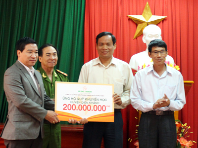 Sáng 16-1, Hội Khuyến học huyện Diên Khánh (Khánh Hòa) tổ chức lễ tiếp nhận quỹ khuyến học 200 triệu đồng do Công ty Cổ phần Đầu tư kinh doanh địa ốc Hưng Thịnh (phường 7, quận 3, TP. Hồ Chí Minh) trao tặng.