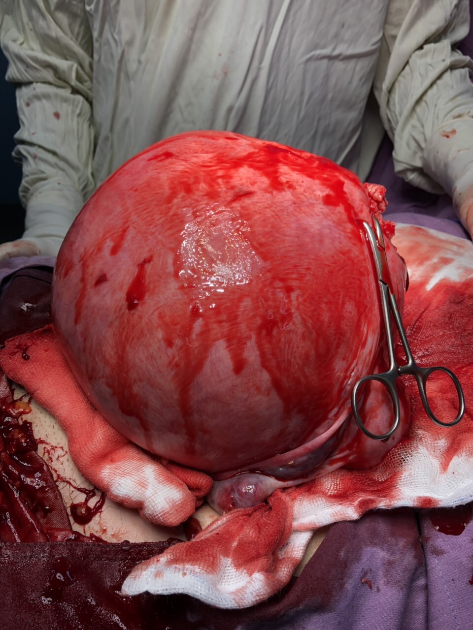 Bệnh nhân V. nhập viện ngày 11-4 trong tình trạng bụng lớn, mệt mỏi, đứng, ngồi khó khăn, đau vùng hạ vị. Sau khi được thăm khám và thực hiện siêu âm, các bác sĩ của Bệnh viện Đa khoa tỉnh Khánh Hòa phát hiện trong tử cung bệnh nhân có u xơ lớn bằng thai 5 tháng.