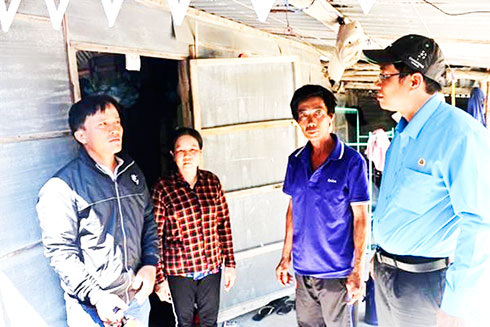 Đại diện Liên đoàn Lao động tỉnh khảo sát nhà ở của một công nhân Công ty TNHH Ngọc Trai Sài Gòn. |