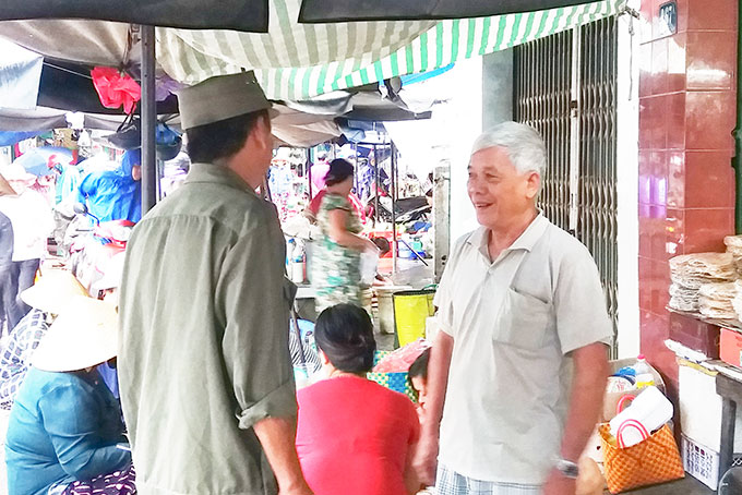 Ông Tiến thu thập thông tin về an ninh trật tự từ quần chúng. |