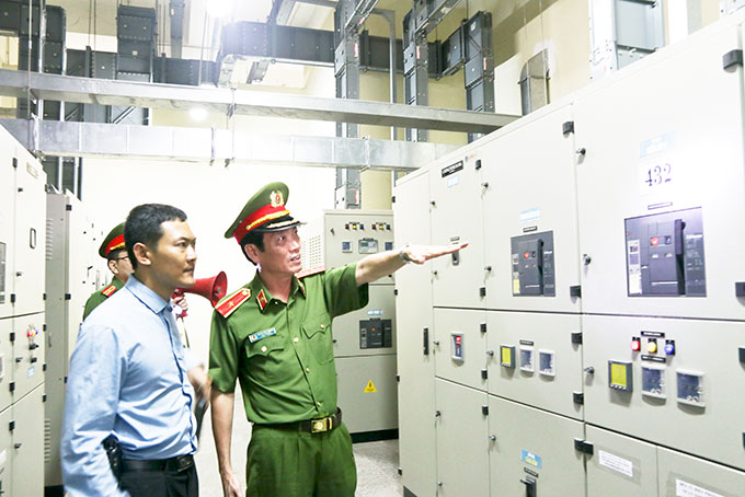 Đoàn kiểm tra liên ngành Bộ Công an kiểm tra hệ thống phòng cháy, chữa cháy tại một tổ hợp khách sạn 4 sao, trung tâm thương mại ở Nha Trang. |