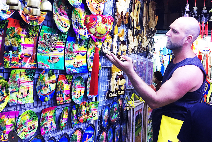 Du khách nước ngoài mua hàng tại TP. Nha Trang. |