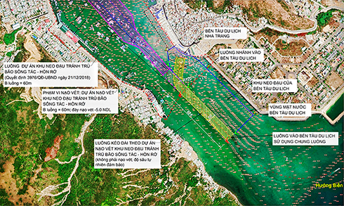 Tại buổi phản biện, Công ty Cổ phần Du lịch Hòn Một đưa ra 3 phương án bố trí tuyến luồng và khu neo đậu của Bến tàu du lịch Nha Trang. Theo đó, phương án 1: tuyến luồng vào bến tàu du lịch sẽ đi chung với tuyến luồng kéo dài của dự án Khu neo đậu tránh trú bão sông Tắc - Hòn Rớ (có bề rộng 60m). Khu neo đậu cho tàu của bến tàu du lịch nằm phía trái của luồng. Phương án 2: tuyến luồng vào bến tàu du lịch rộng 45m, song song và cách tuyến luồng kéo dài của dự án Khu neo đậu tránh trú bão sông Tắc - Hòn Rớ 10m; khu neo đậu cho tàu của bến tàu du lịch nằm phía trái của luồng. Phương án 3: tuyến luồng vào bến tàu du lịch rộng 45m, song song và cách tuyến luồng kéo dài của dự án Khu neo đậu tránh trú bão sông Tắc - Hòn Rớ 60m. Khu neo đậu cho tàu nằm hai phía của luồng bến tàu du lịch.