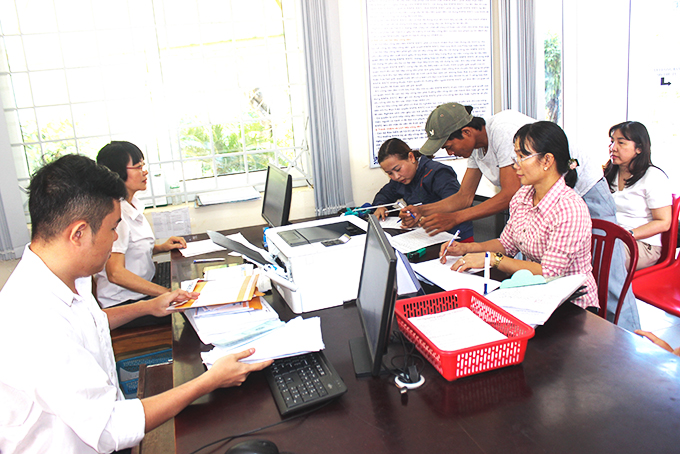 Nhân viên bảo hiểm xã hội giải quyết thủ tục hưởng chế độ cho người lao động. |