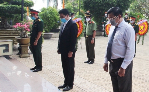 Trong không khí trang nghiêm, với tấm lòng thành kính, các đại biểu đã dành phút mặc niệm và thắp hương tưởng nhớ các liệt sĩ đã anh dũng chiến đấu, hy sinh thân mình để bảo vệ quê hương, góp phần cho sự nghiệp giải phóng dân tộc, thống nhất đất nước.