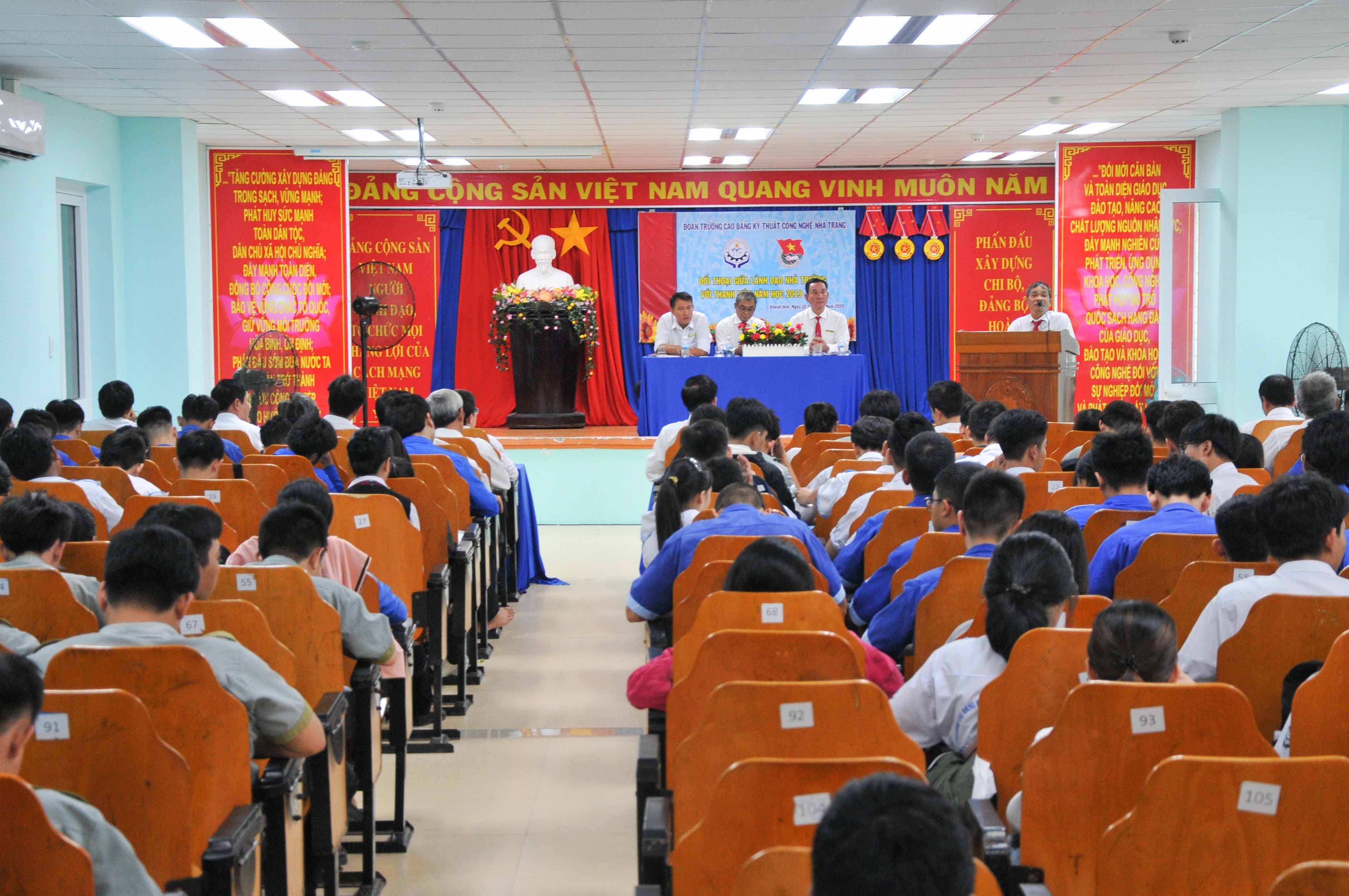 Ngày 22-6, Đoàn trường Cao đẳng Kỹ thuật công nghệ Nha Trang phối hợp cùng phòng Công tác Học sinh - Sinh viên trường tổ chức đối thoại giữa lãnh đạo trường với thanh niên.