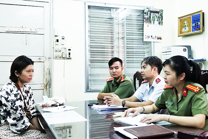 Xử lý một chủ tài khoản facebook đăng thông tin sai sự thật liên quan đến dịch Covid-19. Ảnh: Tạ Long |