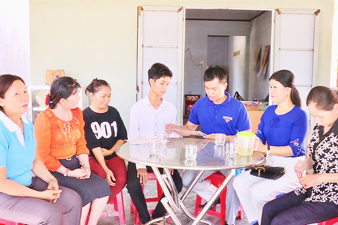 Tuyên truyền dân số tại nhà dân ở xã Cam Hiệp Nam. |