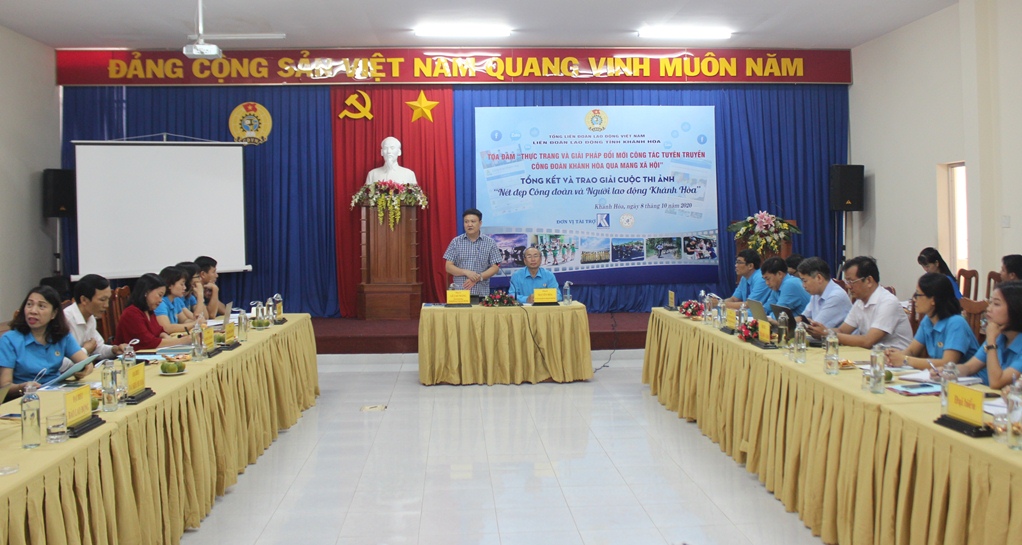 Ngày 8-10, Liên đoàn Lao động tỉnh Khánh Hòa tổ chức Tọa đàm "Thực trạng và giải pháp đổi mới công tác tuyên truyền của Công đoàn Khánh Hòa qua mạng xã hội". Đại diện lãnh đạo các ban, ngành, cơ quan báo chí Trung ương và địa phương tới dự.