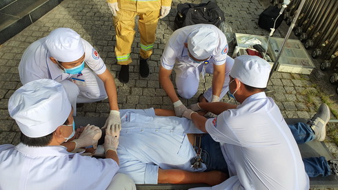 Sơ cứu một nạn nhân trước khi được đưa đến Bệnh viện chữa trị