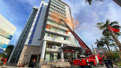Gần 200 người diễn tập phương án chữa cháy, cứu nạn tại tòa nhà Điện lực Khánh Hòa