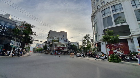 Cảnh sát giao thông chốt chặn các tuyến đường nối đến tòa nhà để các lực lượng tổ chức diễn tập
