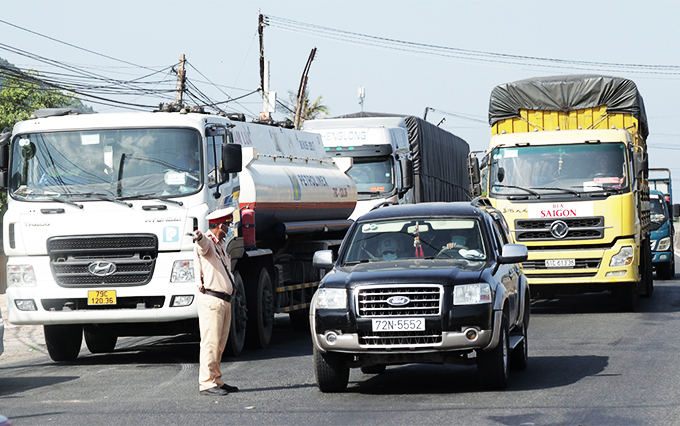 Các xe chở hàng hóa sẽ được ưu tiên chạy trên “luồng xanh” (Quốc lộ 1 qua Vạn Ninh). |