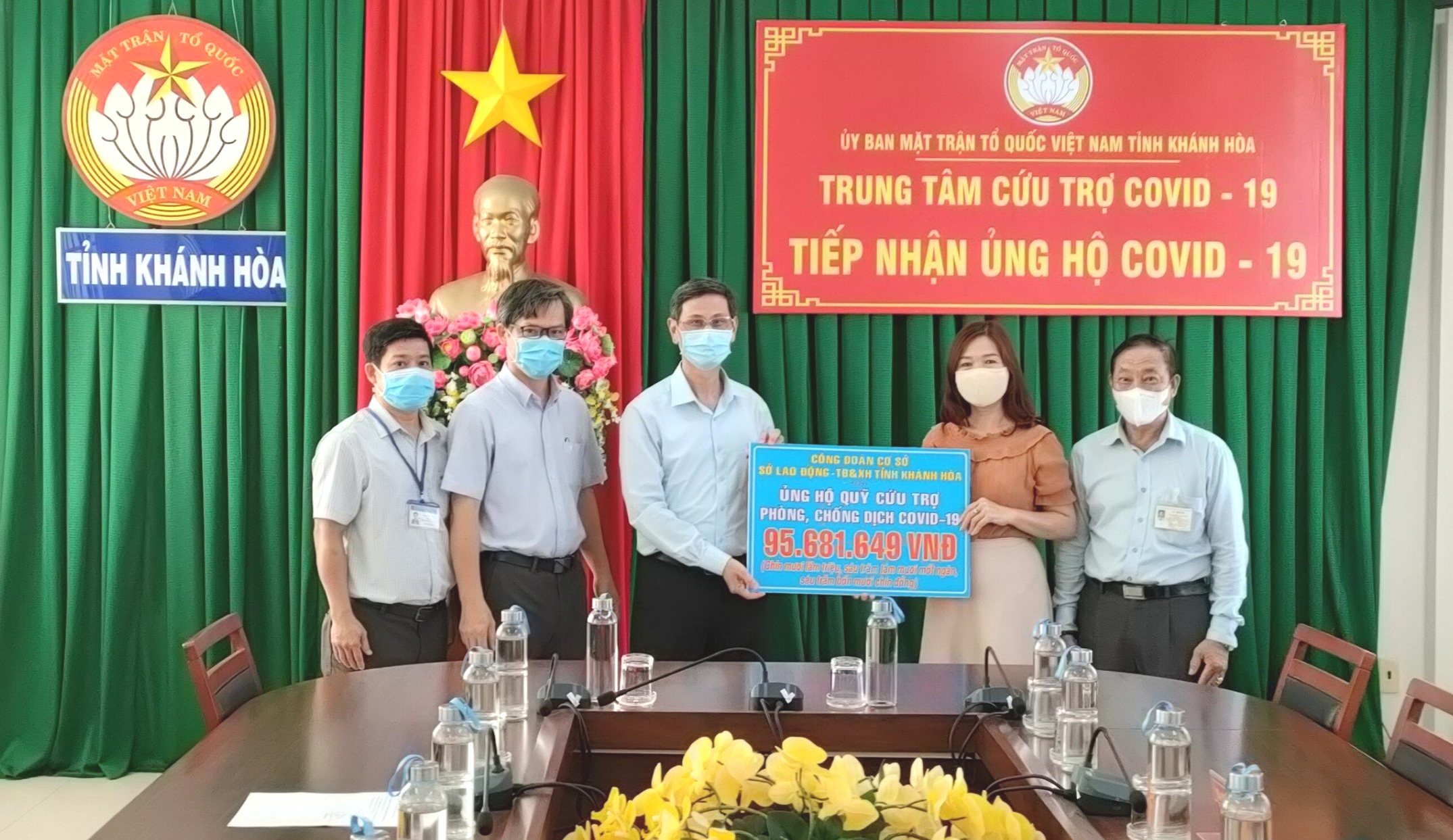 Công đoàn cơ sở Sở Lao động - Thương binh và Xã hội Khánh Hòa vừa trao số tiền hơn 95 triệu đồng cho UBMTTQ Việt Nam tỉnh Khánh Hòa để ủng hộ cho Quỹ Cứu trợ phòng, chống dịch Covid-19 trên địa bàn tỉnh.