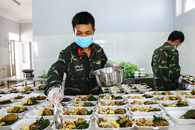 Thượng tá Nguyễn Văn Tuyển - Chính ủy Trung đoàn 803 cho biết, đơn vị đảm nhận việc tiếp nhận, chăm lo đời sống, sinh hoạt, chế độ cho nhân dân đến cách ly tập trung. Tại đây, có người già, trẻ em, có người ăn chay... nên các chiến sĩ cũng nấu thêm các suất khác nhau để đáp ứng bữa ăn của người dân.
