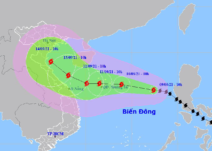Dự báo trong 24 giờ tới, bão di chuyển theo hướng Tây Tây Bắc. Đến 10 giờ ngày 10-9, vị trí tâm bão cách quần đảo Hoàng Sa khoảng 180km về phía Đông. Sức gió mạnh nhất vùng gần tâm bão mạnh cấp 10, giật cấp 12. Cảnh báo ở vùng biển phía Đông khu vực bắc và giữa Biển Đông có gió xoáy cấp 7-8, vùng gần tâm bão đi qua cấp 9, sau tăng lên cấp 10, giật cấp 12; sóng biển cao từ 4-6m; biển động dữ dội.