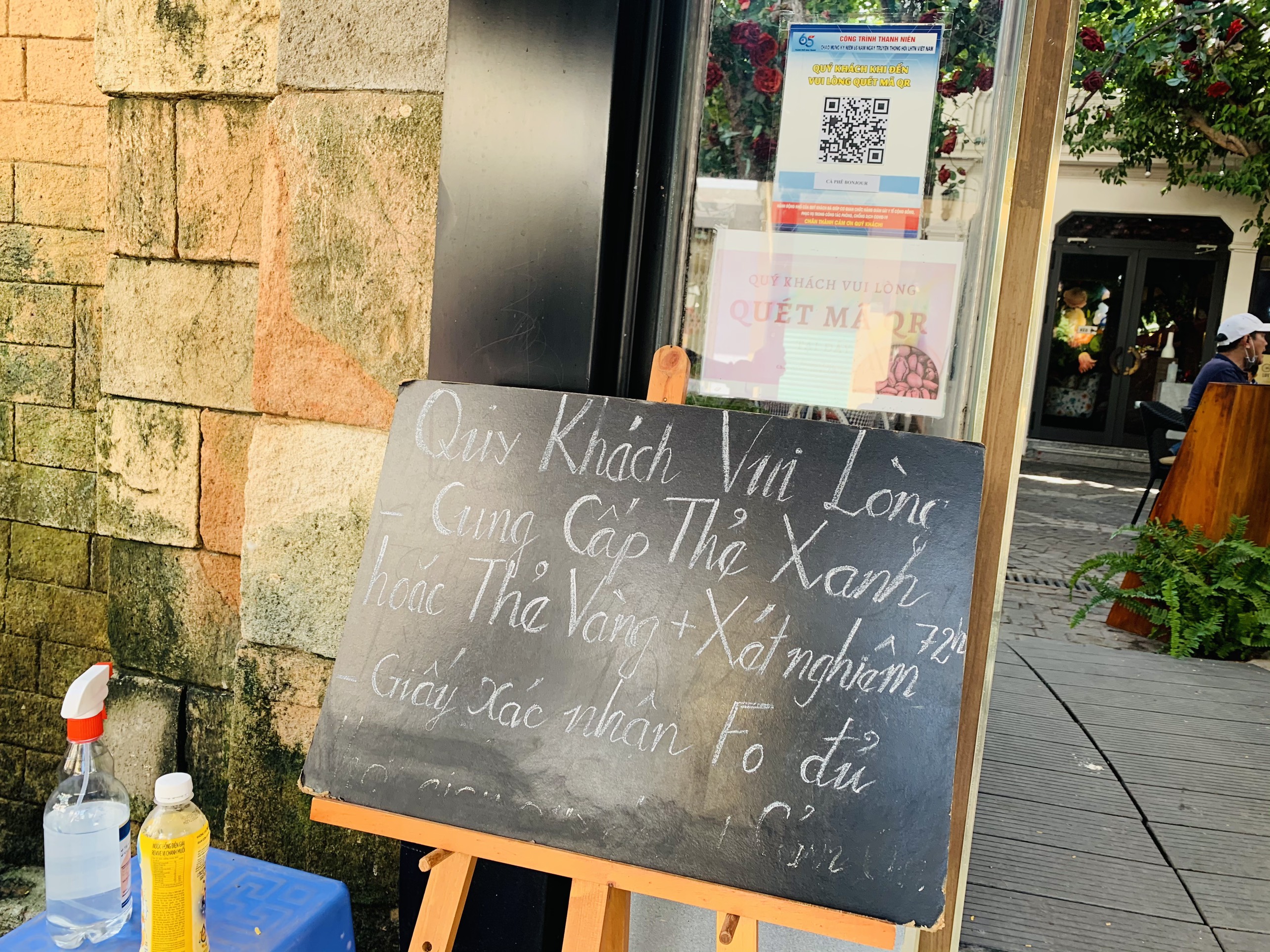 Một quán cà phê trên đường Hoàng Văn Thụ, TP. Nha Trang thực hiện nghiêm việc đặt mã QR và kiểm soát khách ra vào quán |