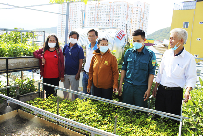 Không chỉ các vùng nông thôn, ở đô thị, các nông dân cũng có cách làm sáng tạo khi thiếu diện tích đất trồng. Hộ anh Lương Xuân Khương (tổ 4, phường Vĩnh Hòa, TP. Nha Trang) đã tận dụng 90m2 trên sân thượng để phát triển vườn rau 2 tầng với hệ cây trồng đa dạng như: Su hào, cải rổ, mồng tơi, bắp sú, dâu tây, bầu, bí, rau ngót, đu đủ… Tổng sản phẩm làm ra khoảng 100kg/tuần. Đặc biệt, vườn rau của anh ứng dụng công nghệ mới tưới tiết kiệm nước và tự điều khiển bằng điện thoại.