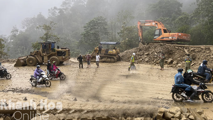 Như vậy, sau 2 ngày bị tắc đường hoàn toàn, đến nay các phương tiện đã có thể lưu thông. Lực lượng chức năng cũng hướng dẫn các phương tiện lưu thông chậm qua khu vực sạt lở, đồng thời tổ chức phân luồng để bảo đảm các phương tiện không bị dồn ứ.