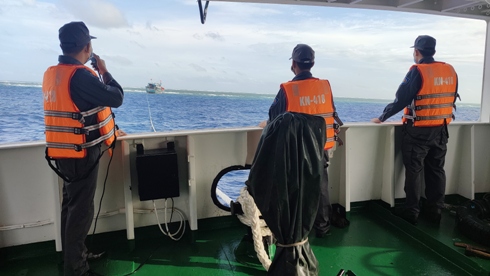 Quá trình thực hiện cứu hộ tàu QNg 90658 TS, các cán bộ, nhân viên Tàu KN418 thực hiện nghiêm các biện pháp phòng, chống dịch Covid-19.