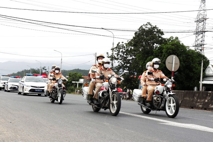 Lực lượng Cảnh sát giao thông tuần tra kiểm soát trên Quốc lộ 1. |