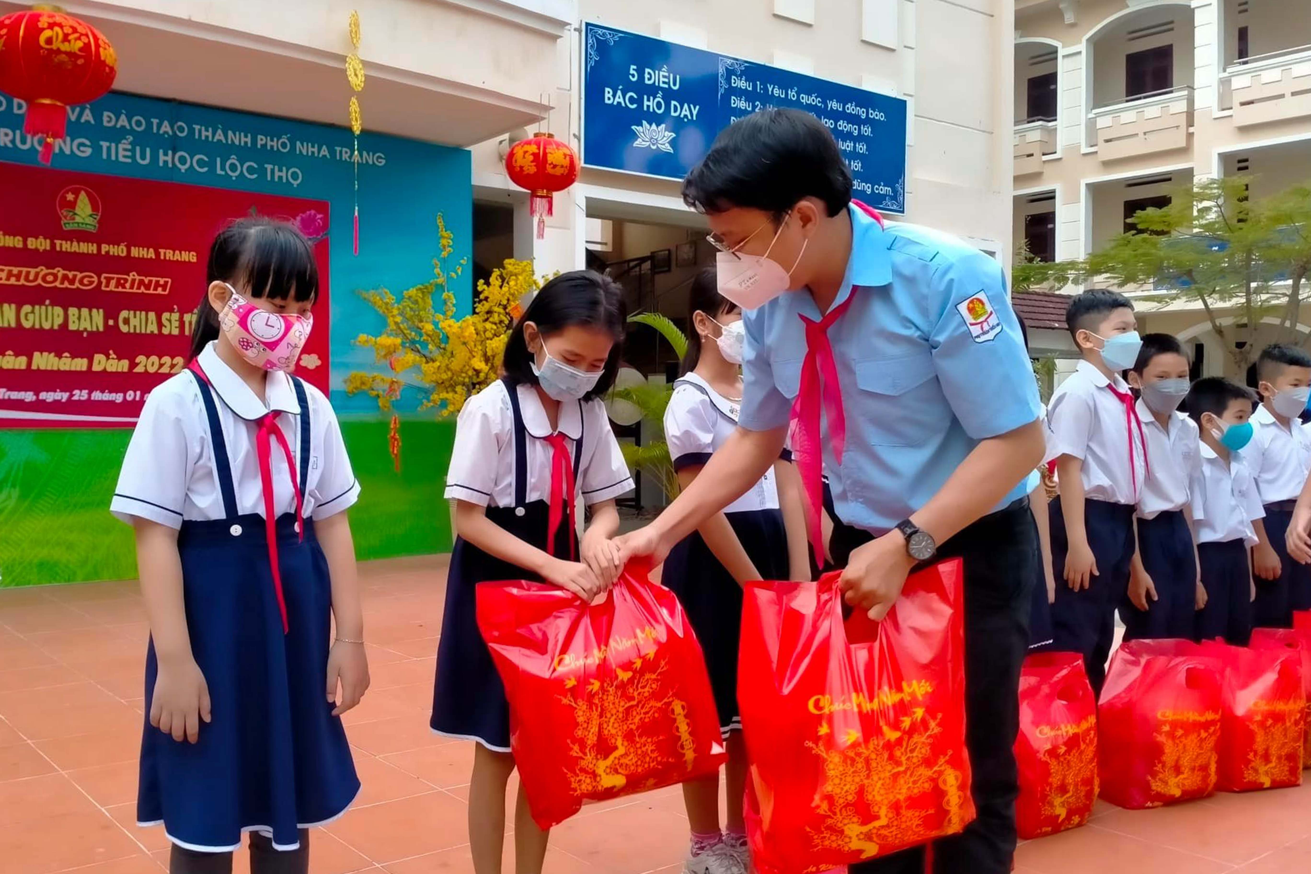 Ngày 25-1, tại Trường Tiểu học Lộc Thọ (TP. Nha Trang), Hội đồng Đội TP. Nha Trang tổ chức hoạt động trao quà “Bạn giúp bạn - Chia sẻ Tết đong đầy” năm 2022.