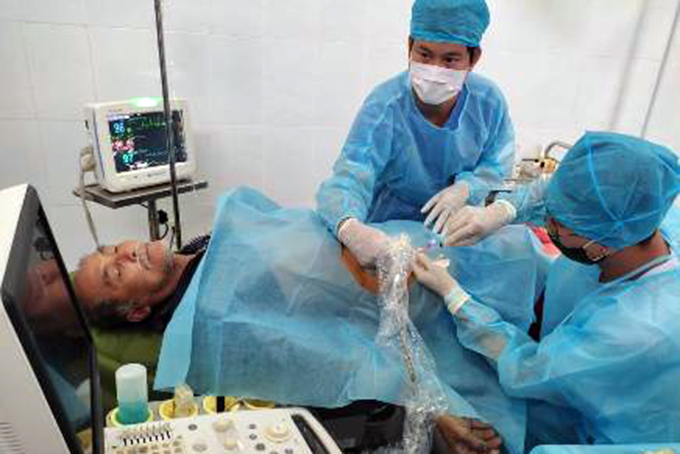 Sau khi tiếp nhận, các y, bác sĩ Bệnh xá đảo Song Tử Tây đã thăm khám và siêu âm, phát hiện bệnh nhân có khối bất thường hố chậu phải, kích thước 12cm x 6cm, chẩn đoán bệnh nhân bị áp xe ruột thừa và đã điều trị: dùng kháng sinh mạnh đường tĩnh mạch, theo dõi sát tình trạng bụng, chọc hút bớt 30 ml ổ áp xe dưới siêu âm cho bệnh nhân. Hiện bệnh nhân tỉnh táo, đỡ đau hố chậu phải, tiếp tục lưu trú tại khu cách ly riêng của đảo để được theo dõi và điều trị.