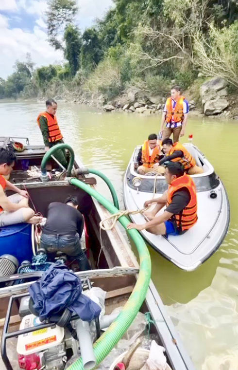 Lực lượng công an truy quét, tạm giữ nhiều phương tiện khai thác cát trái phép trên sông Cái, khu vực huyện Diên Khánh (ảnh công an cung cấp). |