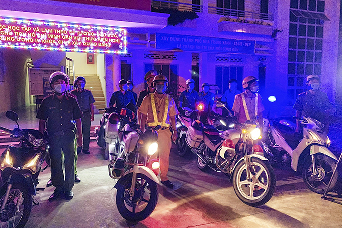 Ra quân tuần tra đêm đảm bảo an ninh trật tự. |