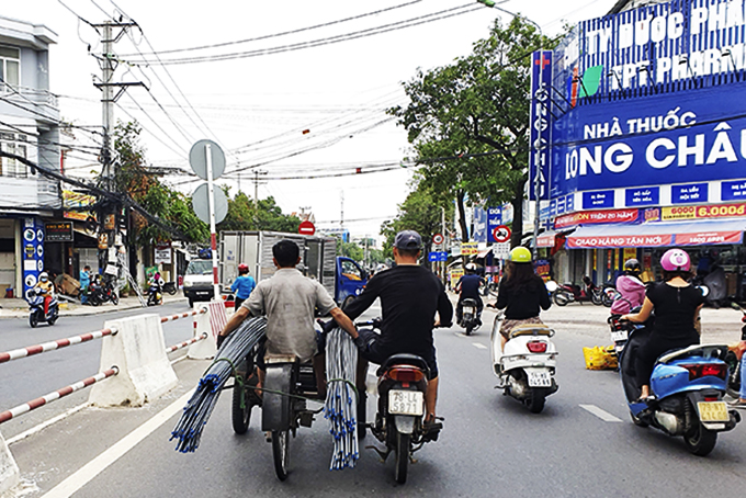 Một chiếc xe 3 bánh lưu thông trái phép trên đường Lê Hồng Phong, Nha Trang. |