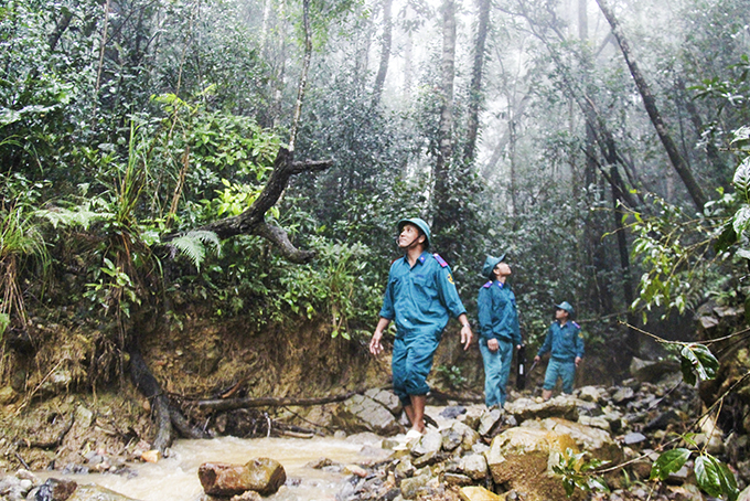 Lực lượng kiểm lâm Khu Bảo tồn thiên nhiên Hòn Bà tuần tra tại khu vực giáp ranh lâm phận Ban Quản lý Rừng phòng hộ Nam Khánh Hòa. |